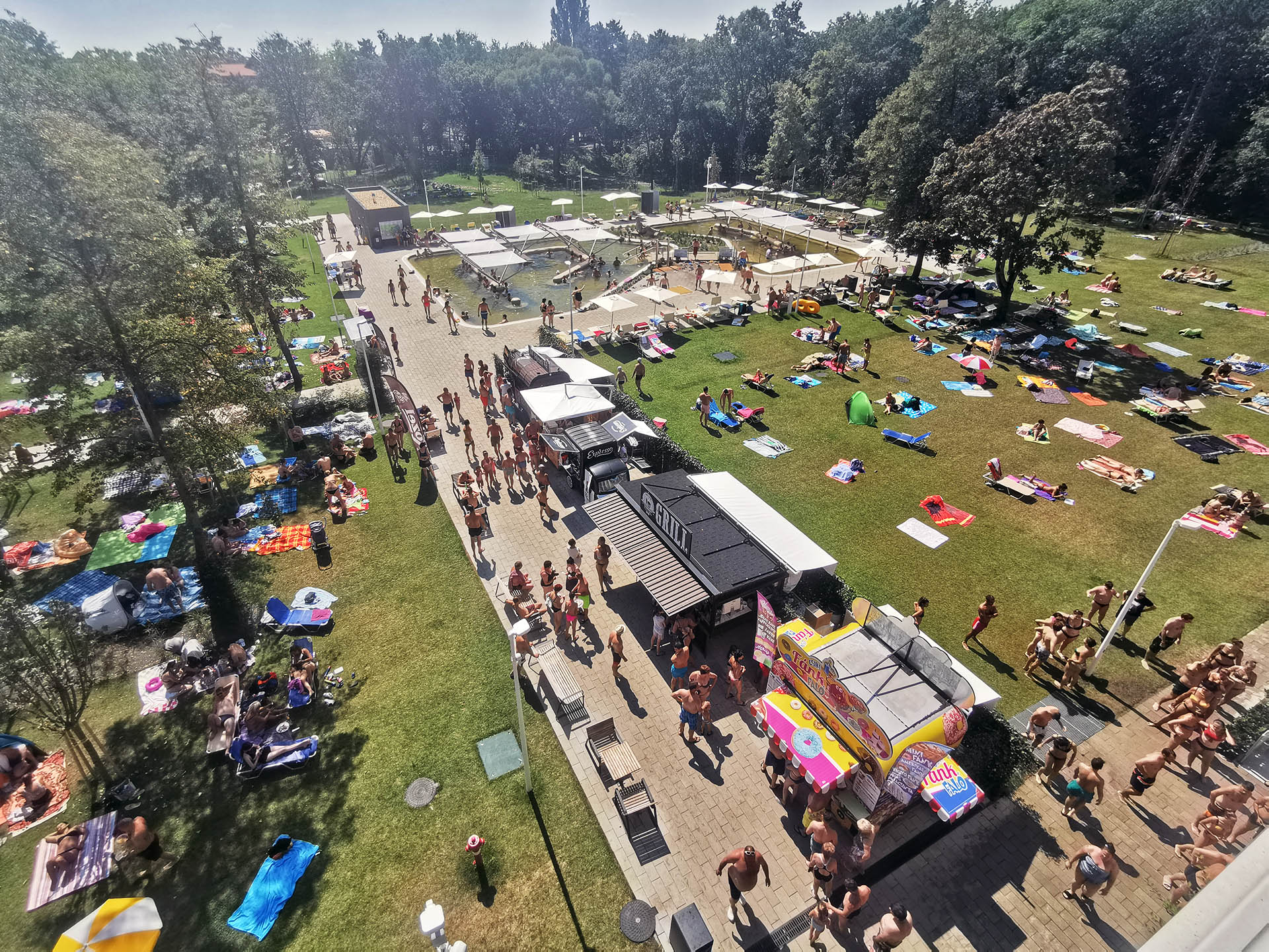 Flashback: 10:25 -kor megérkezés, hatalmas a tömeg a pénztárnál, kacsás szökőkút, Aquaticum-os ajándékbolt, öltöző, Aquaticum Strand, irány az Aquatube csúszda és az Ufó csúszda (sorbanállás 20 perc csúszás 20 másodperc), napozóterasz, 12:10 - ebéd a Food Truck sétányon, nagyon meleg van, brutál sokan vannak, réz folyó és acél csúszda, vizes játszótér, lassú folyó, ugrálómedence (ugróplatform 1 m, 3 m és 4,7 m ugrómagasságokkal), jó csajok mindenhol :) , 13:30 - hullámmedence, Aquaticum poll bár medence, felnőt kalandmedence, pihenőterület (főtt kukorica), feketelyuk csúszda, pihenőmedence, úszómedence, gyógymedence, 14:15 - Aquaticum Mediterrán Élményfürdő (Úszó- és hullámmedence, óriás csúszda, kamikáze csúszda, hydro csúszda, sodrófolyosó, barlangfürdő, gomba és nyakzuhany, dögönyöző, gejzír), ismét a réz folyó és acél csúszdánál (Katus Attila világ- és Európa-bajnok sportoló a fürdőben), ugrálómedence (fejesugrás), napozás, 20:00 -kor vége, záróra, indulás haza.
